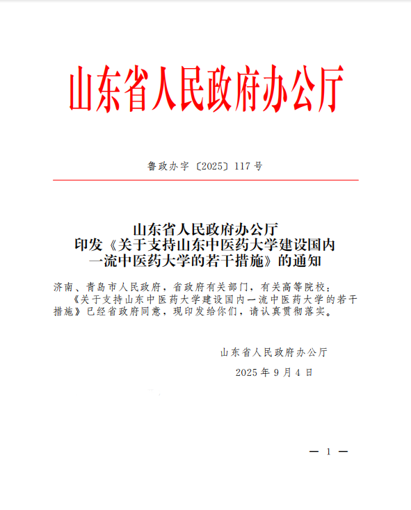 9月4日,省政府办公厅印发了《关于支持山东中医药大学建设国内一流中医药大学的若干措施》。这是建校以来,我校首次获得省政府全面、系统、高规格的政策支持,凝聚着省委省政府对中医药事业发展的战略远见和对我校的深切厚望,标志着我校国内一流中医药大学建设步入“快车道”,开启跨越式发展新征程,对于建设国内一流中医药大学具有里程碑意义。